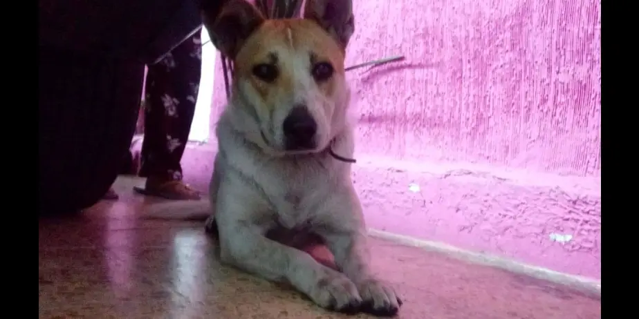 Amigos encontré a esta perrita con COLLAR ROSA sin placa en la colonia “El Palmar”, Nezahualcóyotl. La perrita dice mi hermana que tenía más de una hora parada en la casa de enfrente y en cuanto salí a buscarla no me hacía caso hasta que pasó una moto se espanto y corrió directo a meterse a mi patio, no tuve corazón de sacarla a la calle así que la resguardare por esta noche y todo el día de mañana esperando encontrar a sus dueños, la chiquita está espantada