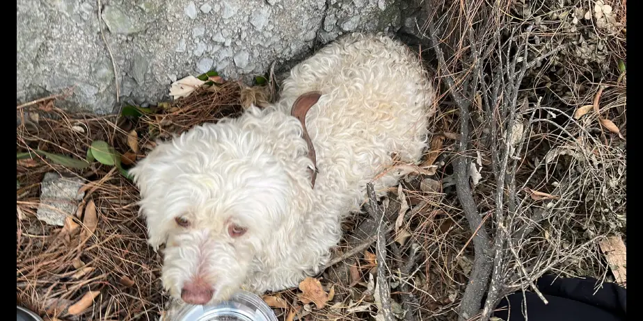 Perrito Perdido Blanco mestizo Caniche Puddle Perro de Agua español Tecamachalco EDOMEX