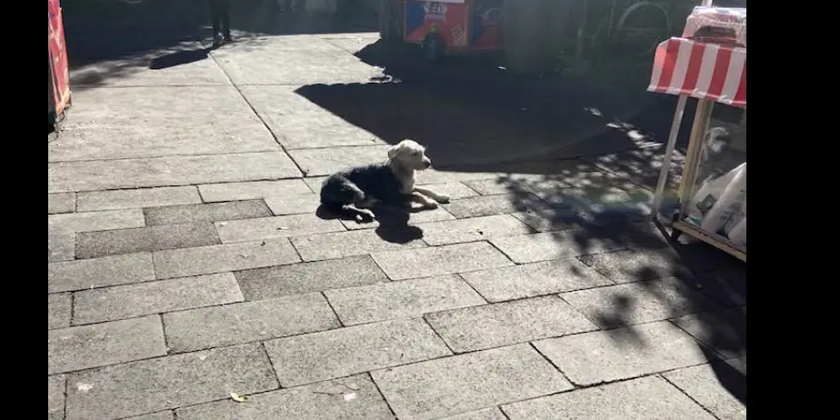 . No se ve sucio, se ve que lo acaban de llevar a la estética. Se ve muy triste. Y antes de que empiecen con sus comentarios fuera de lugar. NO PODÍA quedarme con él o llevármelo, no vivió por ahí, iba camino a mi trabajo. Por favor compartamos para que llegue a sus dueños